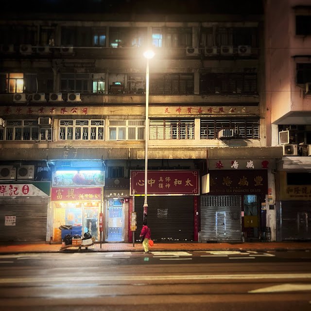 Night falls on HK streets...